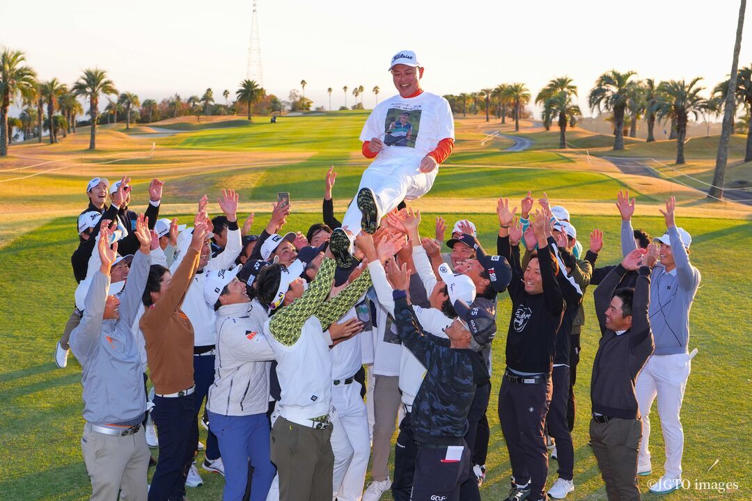 年下の選手たちに「お疲れ様でした」と言って肩を抱かれ、数えきれない選手と握手を交わして、10番ティで胴上げ。