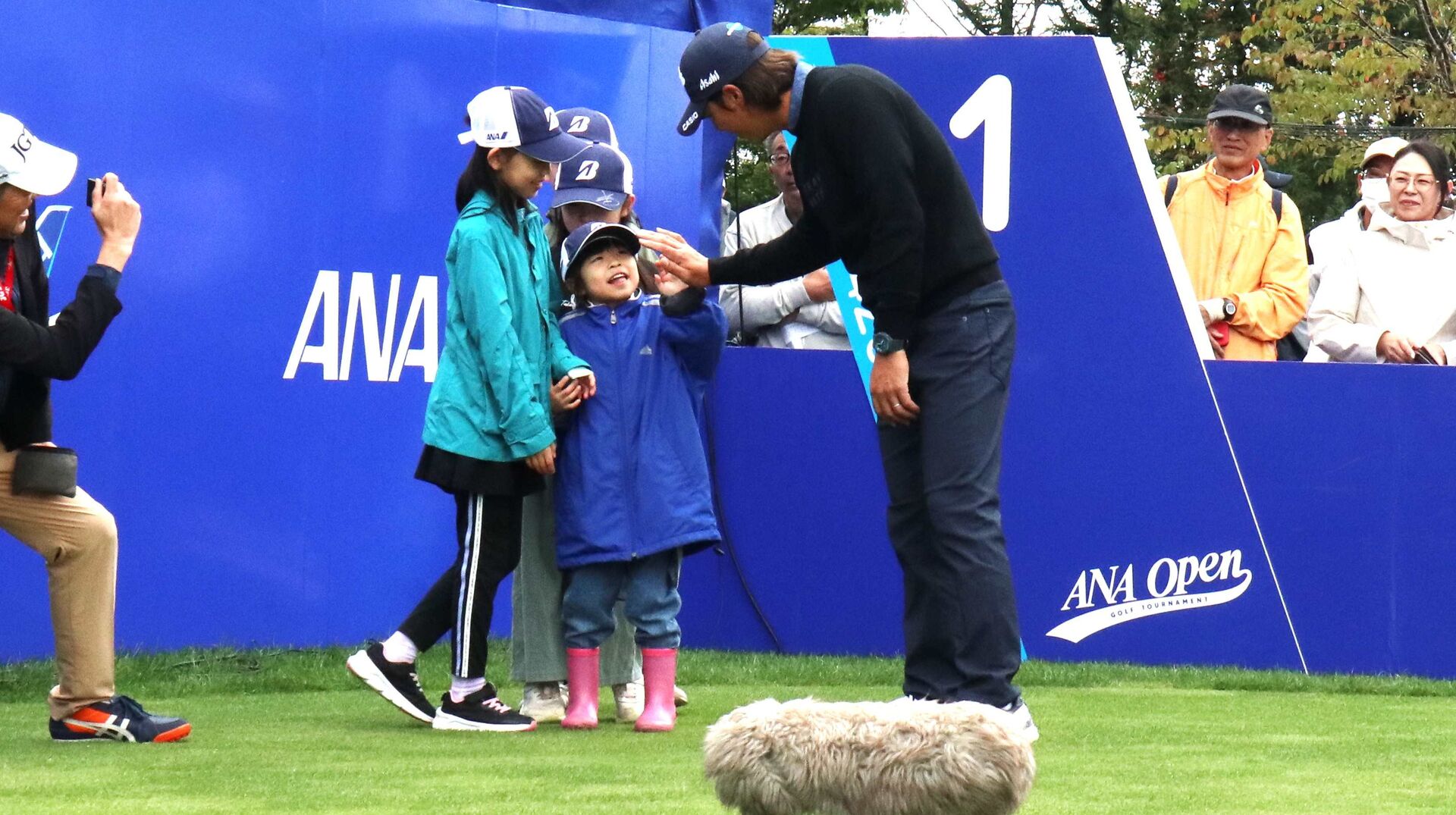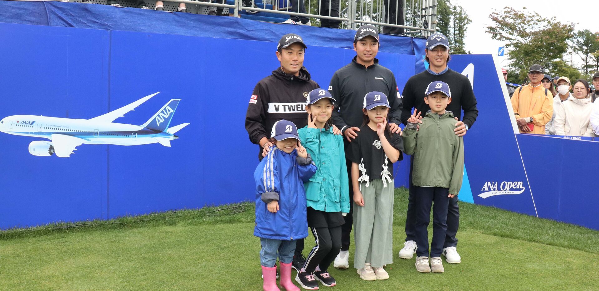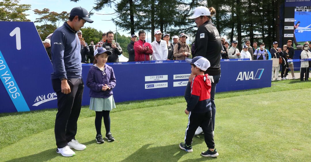 プロがV争いに挑む最終日のスタート前に、ティーイングエリアを手をつないで入場する「キッズエスコート」を実施。