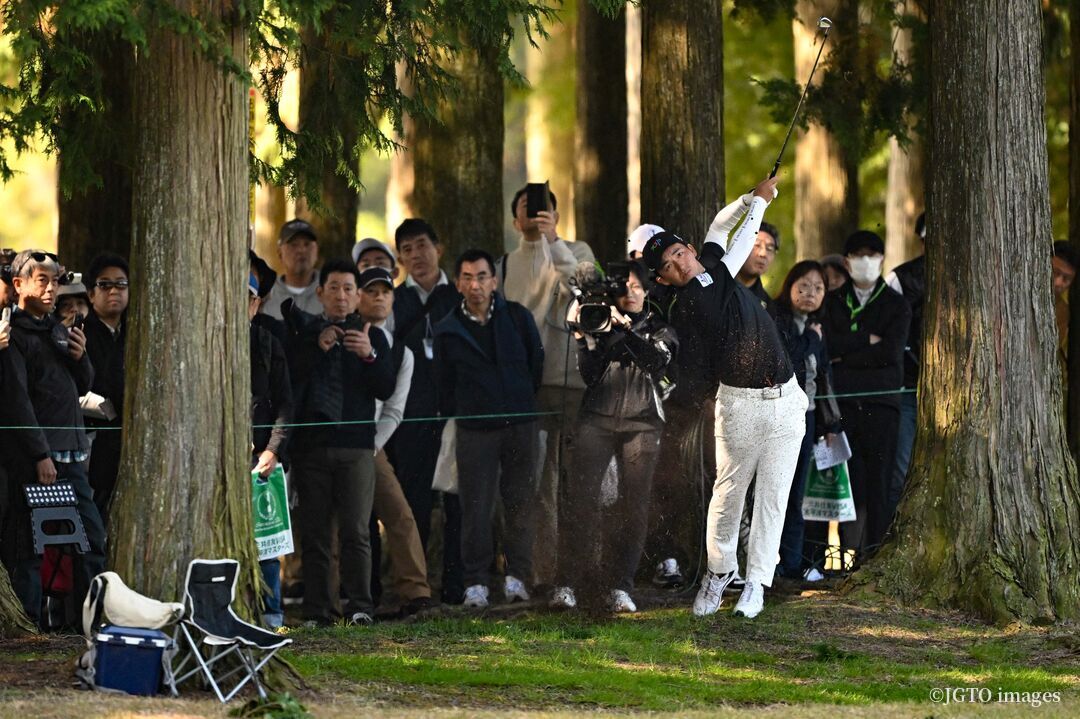 2番で6メートルを沈めて連続バーディを記録し、李尚熹(イ・サンヒ)が3差に迫った6番では第1打が右の林に行ったが、65ヤードの第3打で、スピンと傾斜を巧みに利用しOKパー。