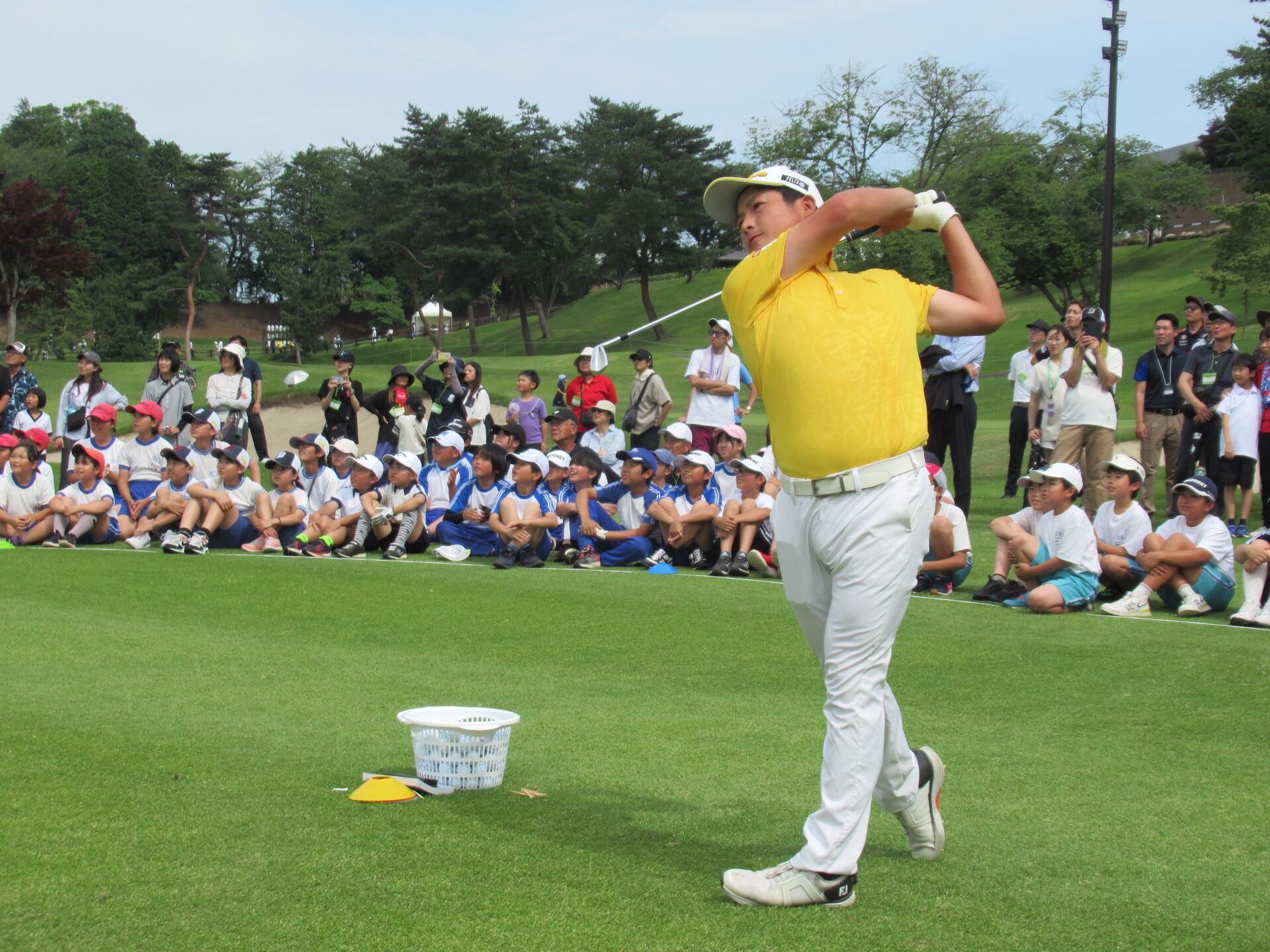更にドライバーショットに水切りショットと、ビッグドライブとナイスなトリックショットで、小西は子どもたちのハートを鷲掴みにした。