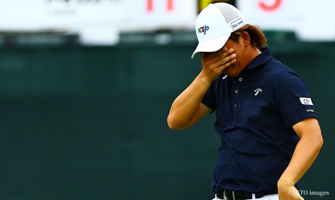 1差の単独トップで迎えた18番ではOBを覚悟したティショットが幸い右のバンカーに残っていたが、ボールはあご近く。