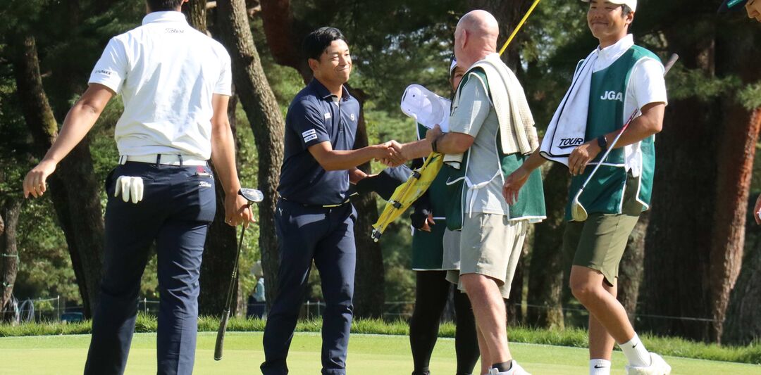 勝者にマスターズの切符がある日本タイトル戦を原敏之(はら・さとし)と金子駆大(かねこ・こうた)が3アンダーの最上位でターンした。