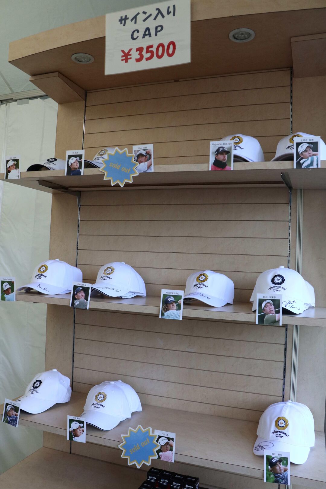 さて「オフィシャルチャリティショップ」では、チャリティ抽選会のほか、選手のサイン入りチャリティグッズも大好評販売中で、松山英樹と石川遼のサイン入りキャップ(3500円)は毎日、開門と同時に売り切れ。