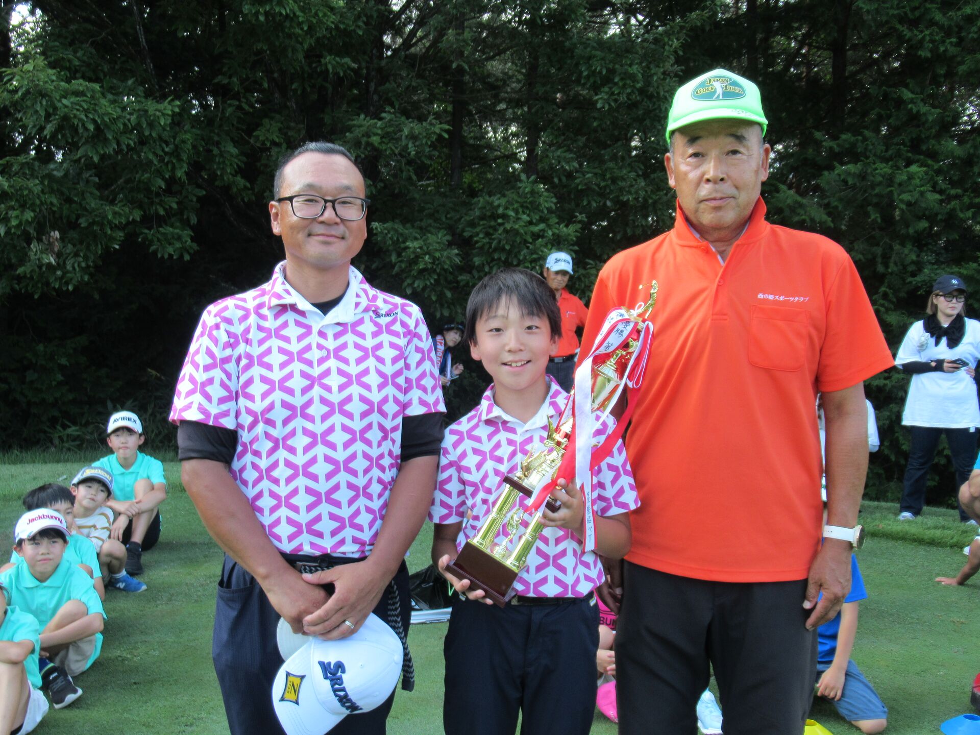 優勝は27ストロークで2位に2打差をつけて、江上颯ペア(熊倉小学校)が優勝者となり、優勝カップを受け取った。