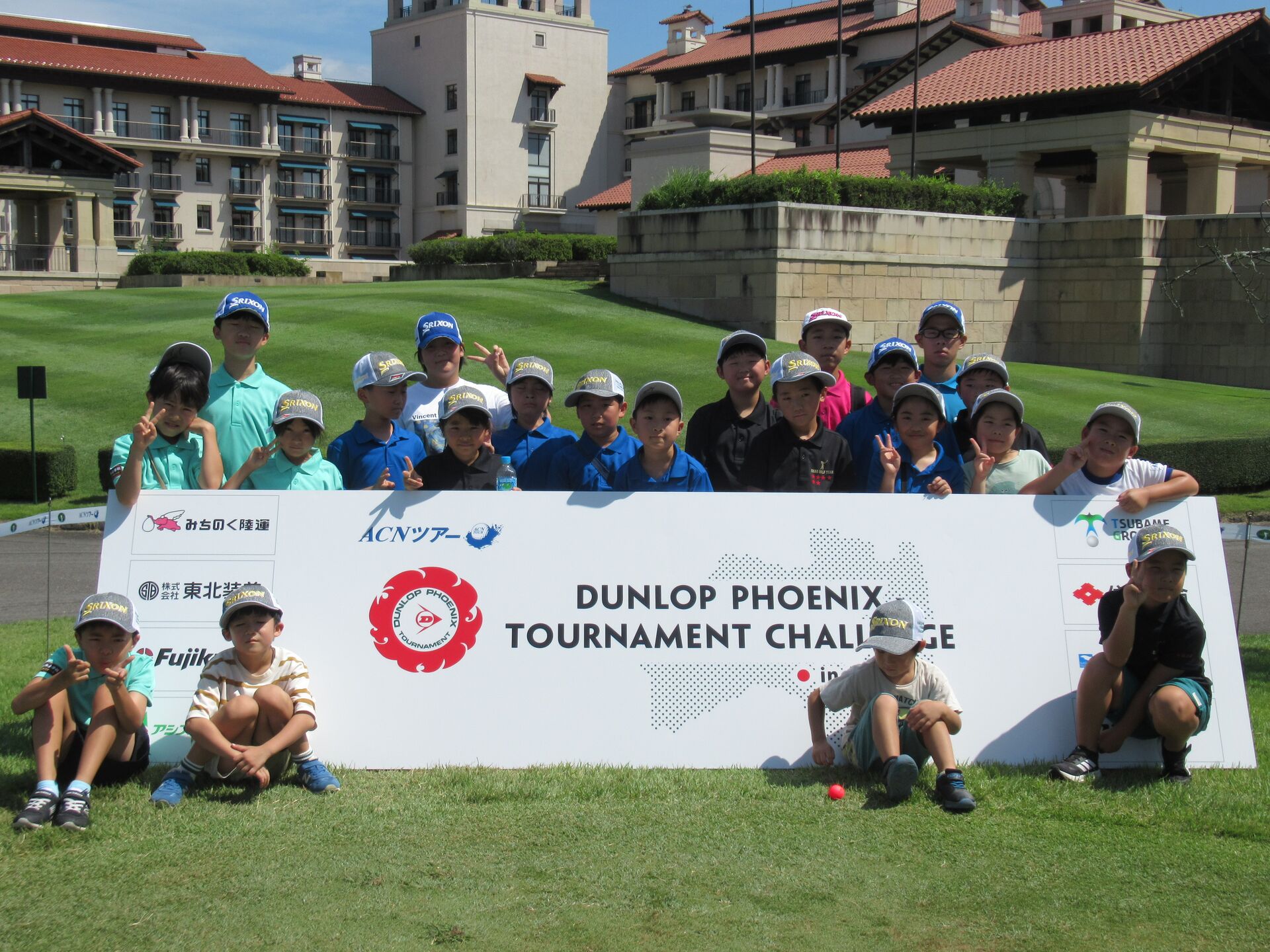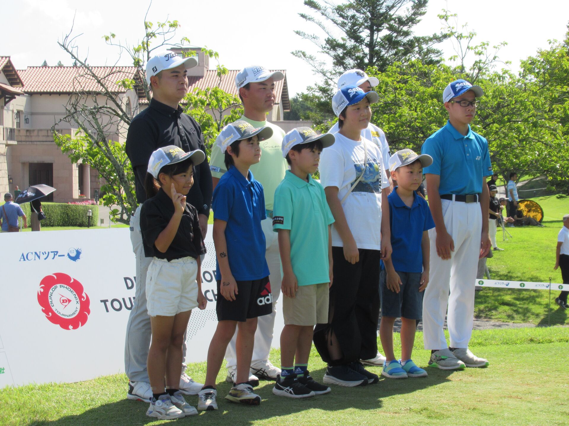 福島県西郷村にあるNPO法人西の郷スポーツクラブでスナッグゴルフを楽しんでいる小学生とその卒業生、24名がトーナメント最終日に1番ティでスタートしていくツアープレーヤーたちを見送る「キッズエスコート」に挑戦した。