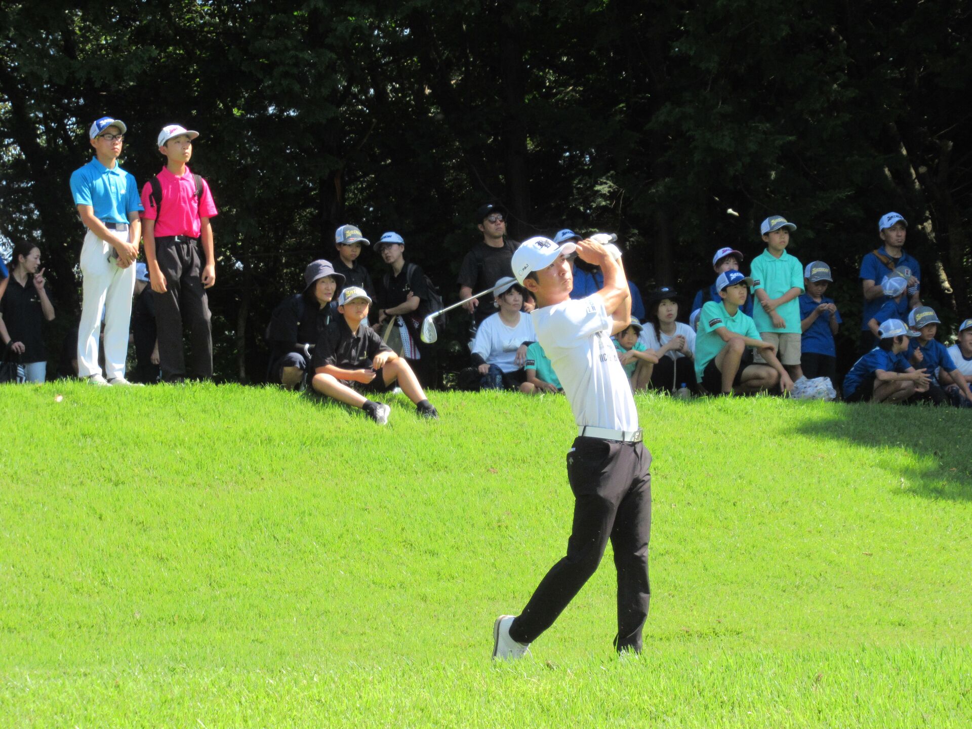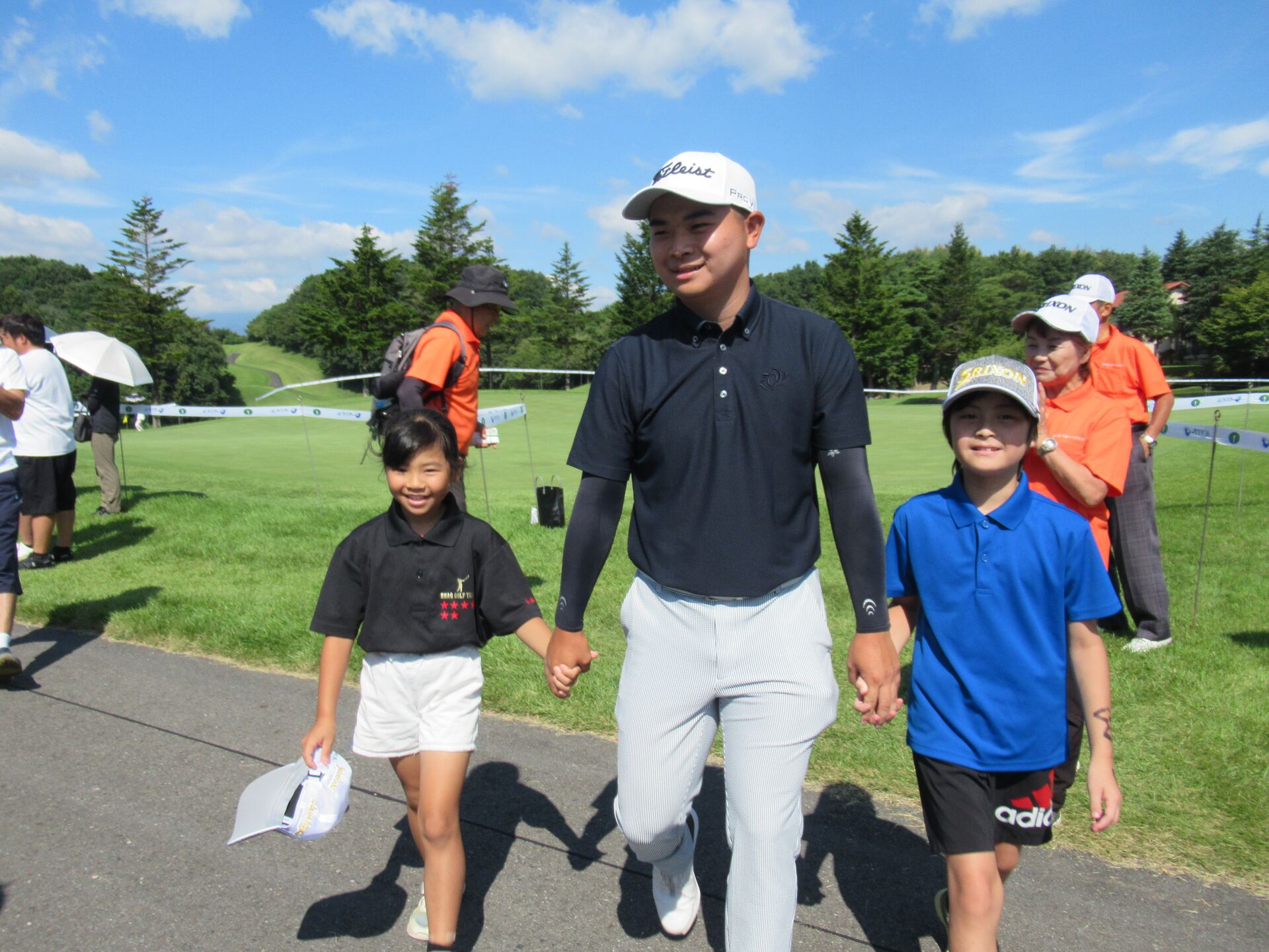 ティーグランド入場前にキッズ達は担当する選手への挨拶から始まり、選手から大会記念キャップにサインをもらい、記念撮影、ティーグランドに入場した後はロープ内でプロの豪快なティーショットを見学、プロとつかの間のふれあいを体験した後はロープ内トーナメント観戦を行い、、ゴルファーのプレーを間近で見学、ショットの音や飛距離に驚いていた。