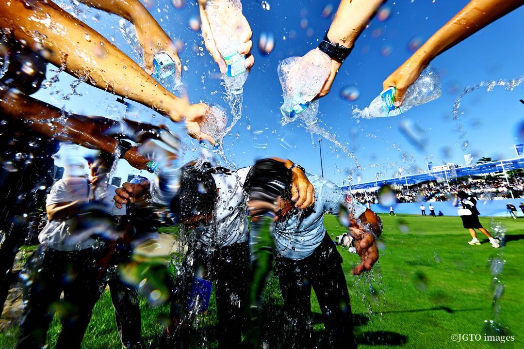 1差で振り切りJGTO選手たちの盛大な水シャワーで喜びに浸った。