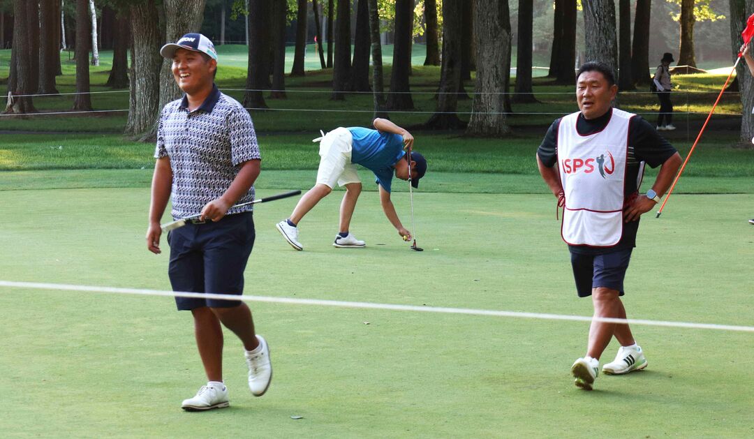5バーディ、1ボギーの「68」で回り、カットラインの通算8アンダーで決勝進出をモノにし、キャディでお父さんの正宏さんも安堵した。
