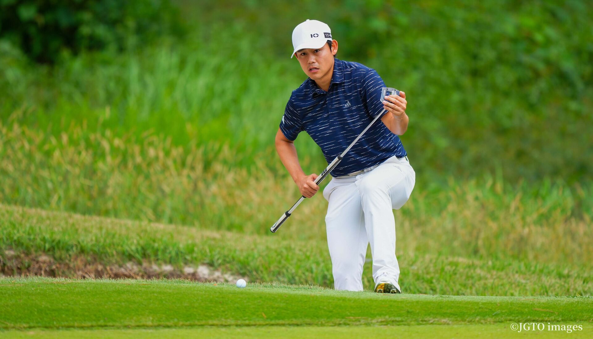 インスタートの10番で5メートルを決めると、12番パー5は100ヤードから、1メートルにくっつけ連続バーディ発進。