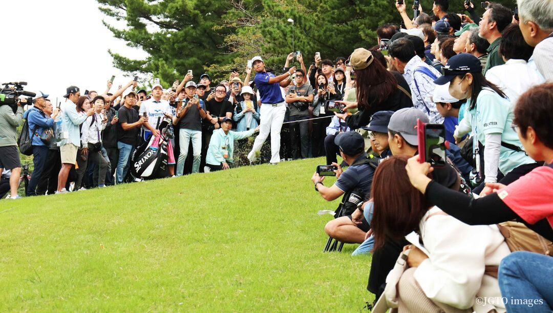 台風22号の影響で、2時間早めてスタートした初日。シャウフェレや、アダム・スコットら人気選手が来日する中、今年も誰より多くのギャラリーを背負ってのプレー。